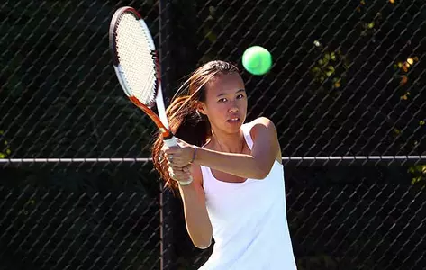 At No. 1 singles, senior Amy Zhang (Plano, Texas) improved to 4-2 on the year with a dominating 6-0, 6-1 win over Diana Popescu. FreshmanVanessa Petrini (Stamford, Conn.) took her win streak to six with a 6-4, 6-3 victory over Miranda Podlas at the No. 6 position.