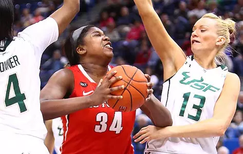 Oliver came off the bench as the only Scarlet Knight in double figures with 15. Senior Erica Wheeler (Miami, Fla.) added nine, while sophomore Betnijah Laney (Clayton, Del.) had six points and nine rebounds. Only four Bulls scored in the win led by Smith with 17 and Inga Orekhova with 12. Eleven of Orekhova's points came in the second half.