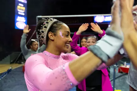 - Earned a 9.800 on bars against Iowa to tie career high (2/14)